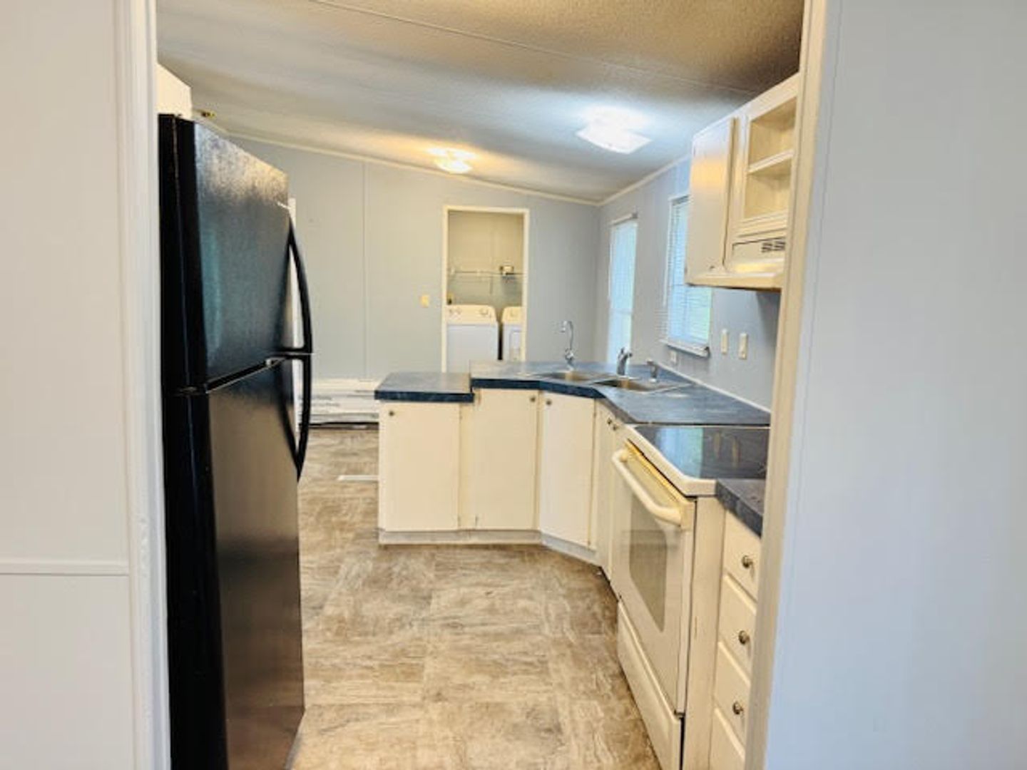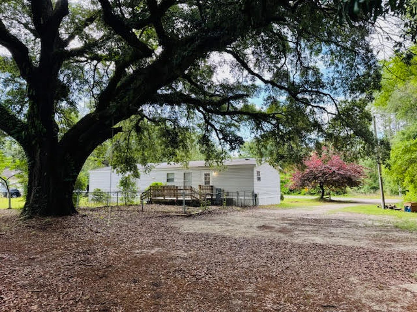 This charming 3 BR, 2 BA doublewide is situated on almost half an acre with a large front yard, beautiful trees (including a majestic oak) and a large rear yard. It has a fresh interior that includes new paint throughout with flooring and lighting updates. The open floor plan includes a living room with a vaulted ceiling, a dining room, kitchen and breakfast room. The large primary suite has a walk-in closet and an additional flex room suitable as a home office or den. A large adjoining bathroom has a corner soaking tub/shower and a vanity with dual sinks and a linen closet. The split-level floor plan includes 2 additional bedrooms with walk-in closets that share a hall bathroom with a tub/shower and single vanity. A laundry room has a washer/dryer included and a rear door that leads to the rear deck, patio and spacious rear yard. The home has plenty of parking and a storage shed. It's located cross from the Roger Bacon Academy charter school and just 15 mins. to downtown Wilmington and a short drive to shopping and dining nearby. NO smoking, vaping, students nor pets allowed.