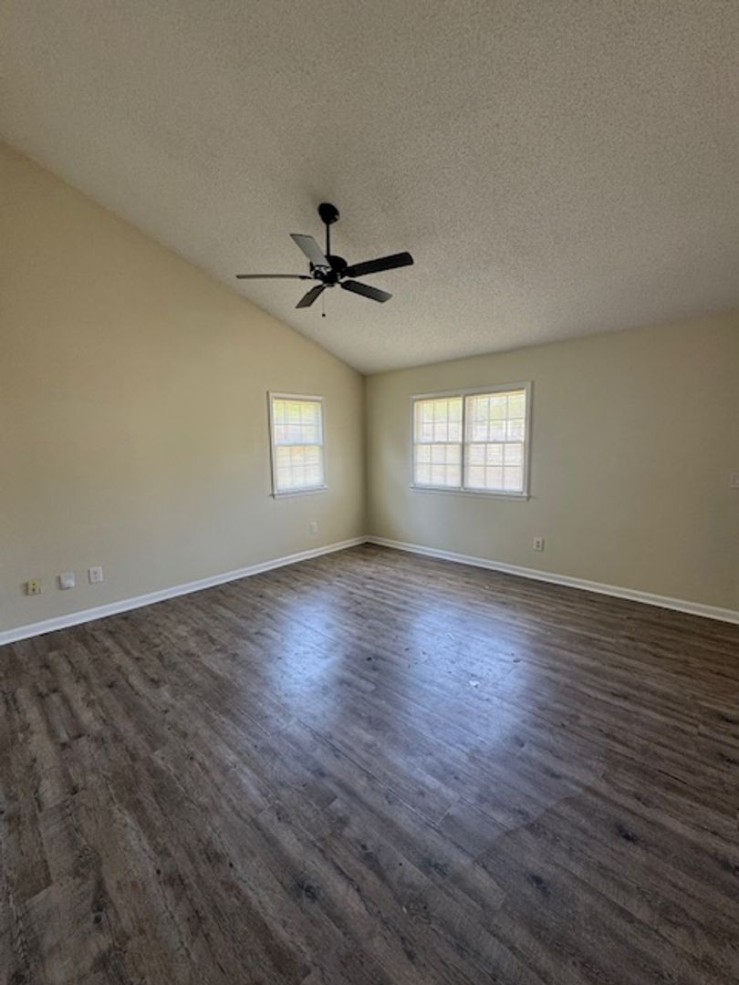 SFH, 3 bedroom, 2 bathroom, open plan living room, kitchen with / combination dining area. Laminate floors through out the house and vinyl in bathrooms and kitchen.