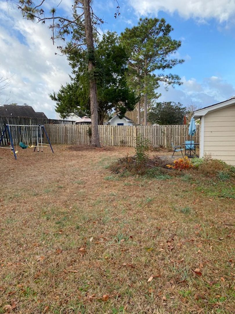 Fenced back yard.